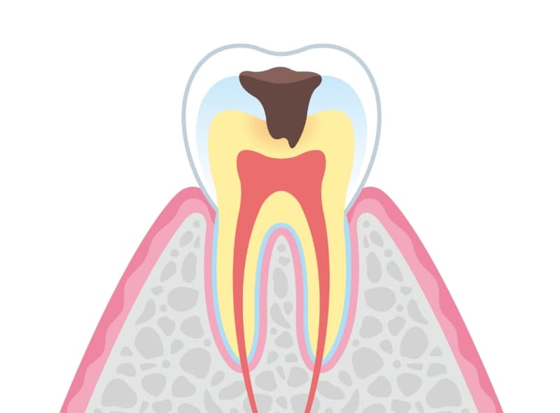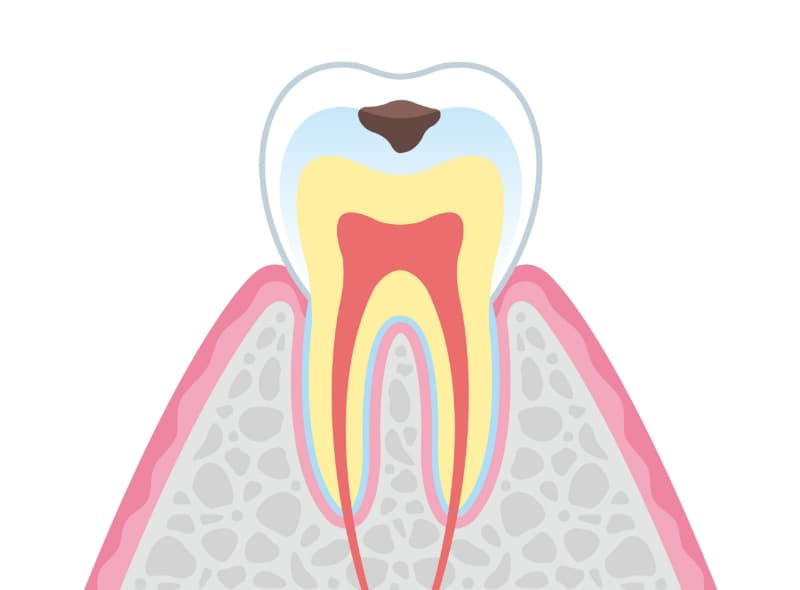 - 虫歯が象牙質まで到達すると、神経に近い部位まで細菌が侵入します。象牙質は神経との距離が近いため、温度変化などの刺激で痛みを感じやすくなるのが特徴です。