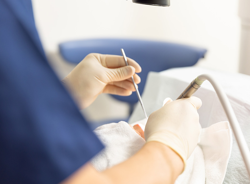 - この段階では、虫歯を除去し、適切な詰め物や被せ物で歯を保護しなければなりません。症状によっては、神経の除去(抜髄)が必要になるケースもあります