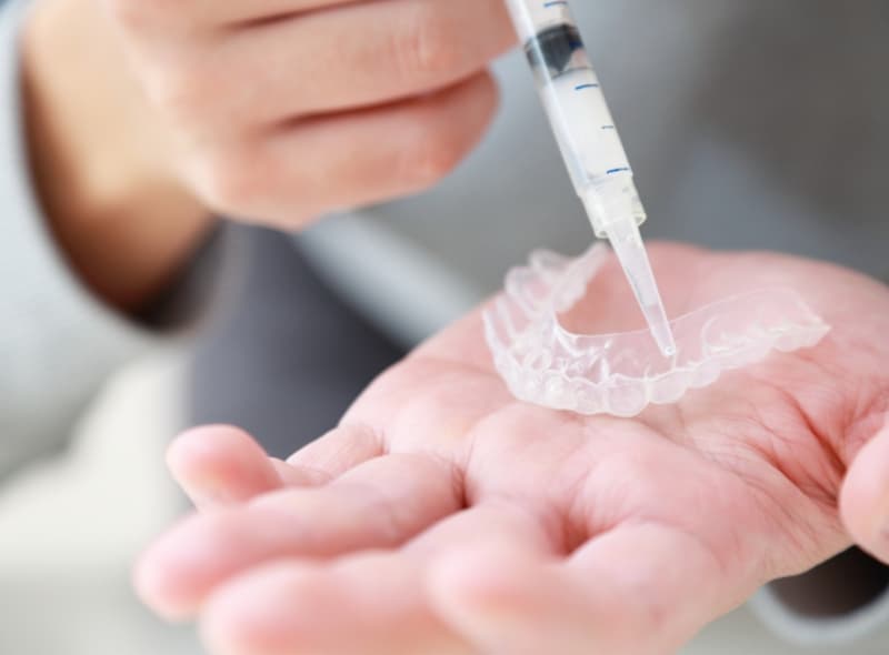 歯科医院であらかじめ作製したマウスピース(カスタムトレー)に低濃度のホワイトニングジェルを入れて毎日一定時間お口に装着し、